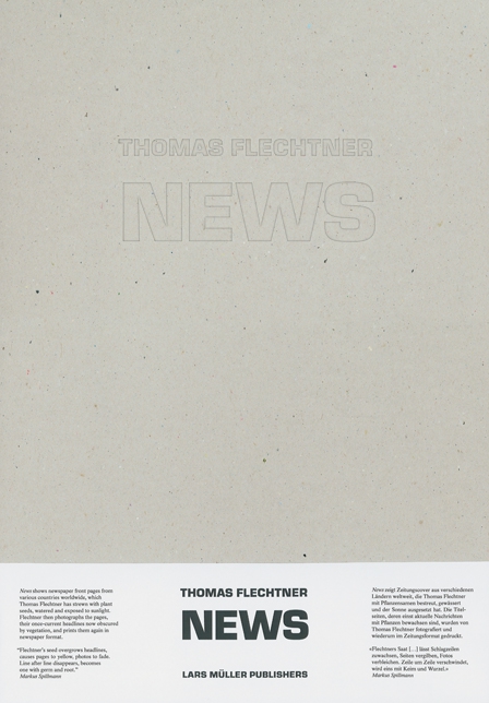 News represents a further development of the much-acclaimed work of artist Thomas Flechtner. Whereas in Snow he looked at snow as a metaphor for timelessness, calm, distance, and loneliness, and in Bloom Flechtner used atmospherically condensed studies of plants to examine the boundless colorfulness and movement of grown nature, for his new project News Flechtner collected newspaper front pages over a period of one year, scattered plant seeds from very different countries over them, watered them, and, finally, exposed them to the sun. He recorded the way the “news” was gradually bleached and overgrown with plants in more than one hundred color photographs. Flechtner contrasts the anarchy of nature with the agenda of mankind, while also questioning the fleetingness of memory and the demands made on it in shaping today’s world.