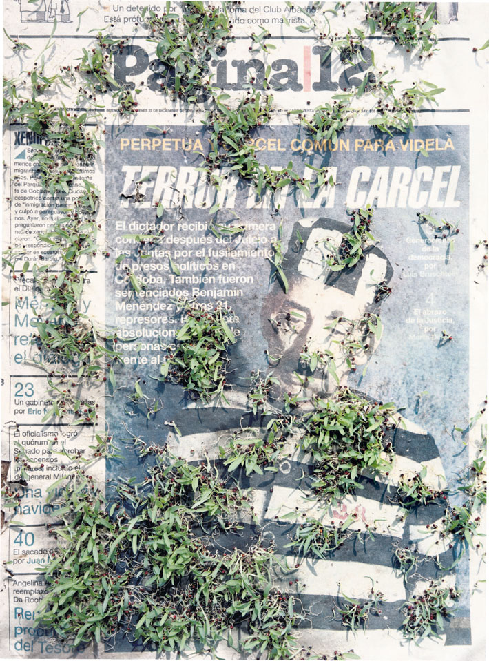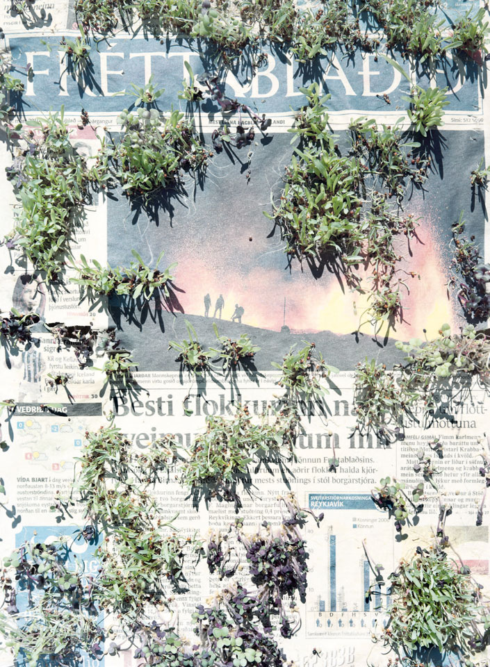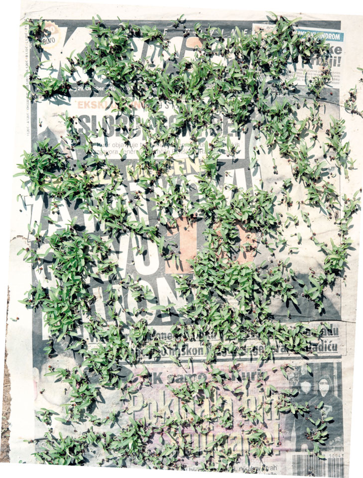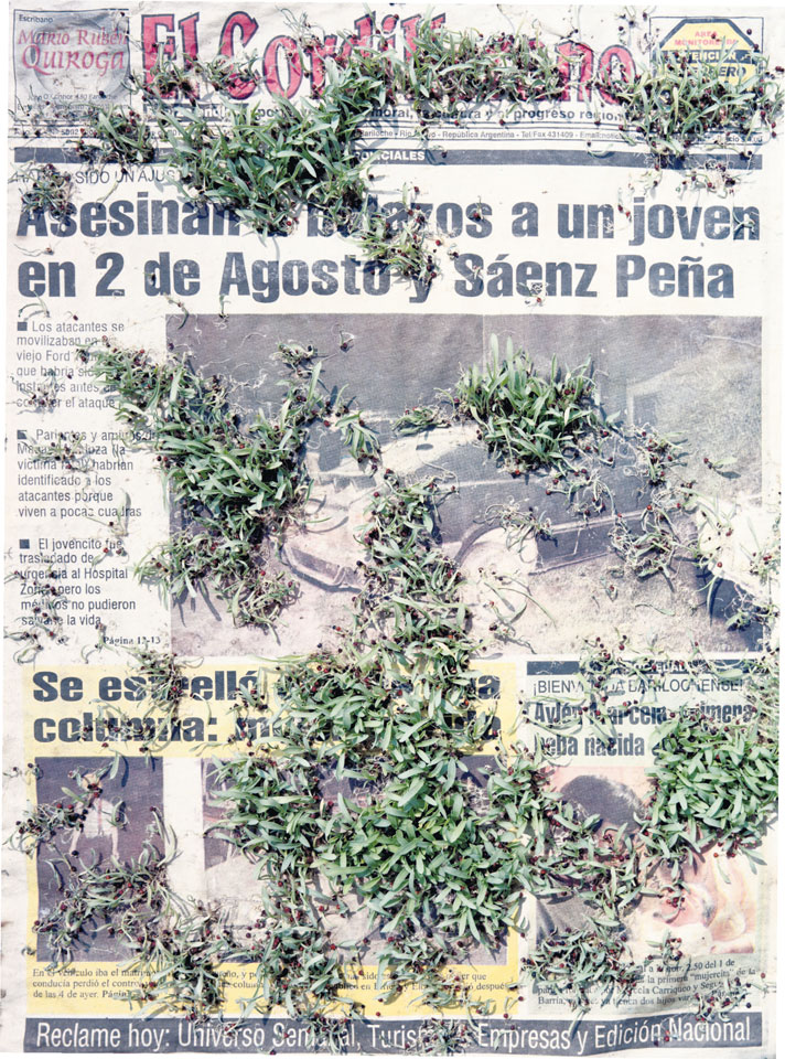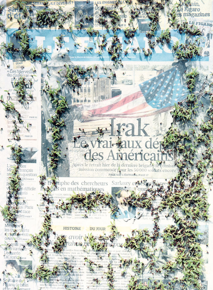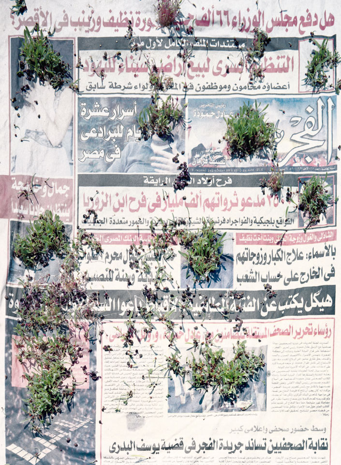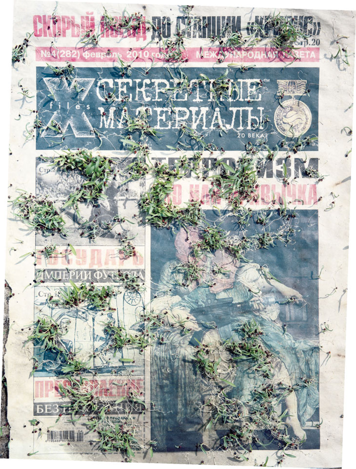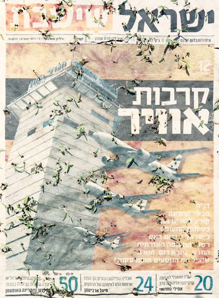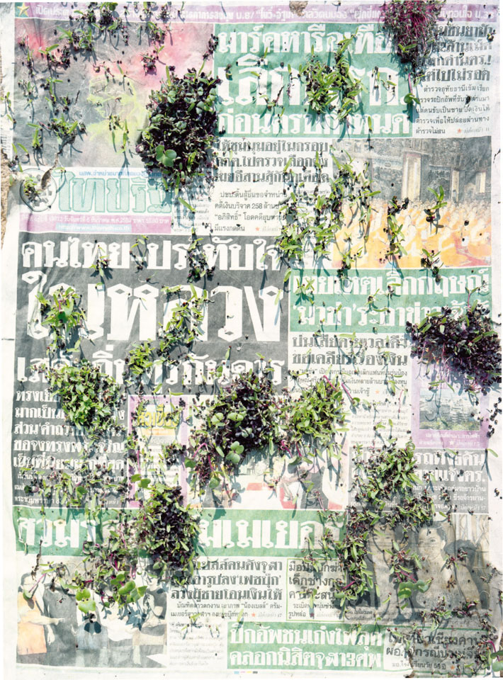 Initiated in 2010, News is Flechtner's most recent body of work, an ongoing examination of the human imprint on nature over the passing of time, and collective memories as administered by public media. Throughout it's suggested that that today's headlines are a simultaneous realization of history and of present day reality. First cultivating a variety of seeds in his garden, and then germinating the vegetation over 100 international newspapers, Flechtner photographs the publications head on, as though a document fit for an historical archive, filling his frame with the entire front page. The ensuing images, overexposed and ephemeral microcosms, allude to a human mediation in which nature is prompted to reassert itself, gradually melding and growing over the industrial world. Says Flechtner, "I'm sprinkling seeds over the newspapers; I water them and wait to see what remains. The quote of today would be, 'the excitement of today is the garden of tomorrow' ". News, shown here for the first time, is part of a larger oeuvre entitled Sites, which works around the idea of man's constant intervention to construct, control and restructure fields, gardens and parks in a decorative manner. What Flechtner attempts to convey is the confluence between the human desire to master and posses nature versus the prevailing vitality of the green kingdom.