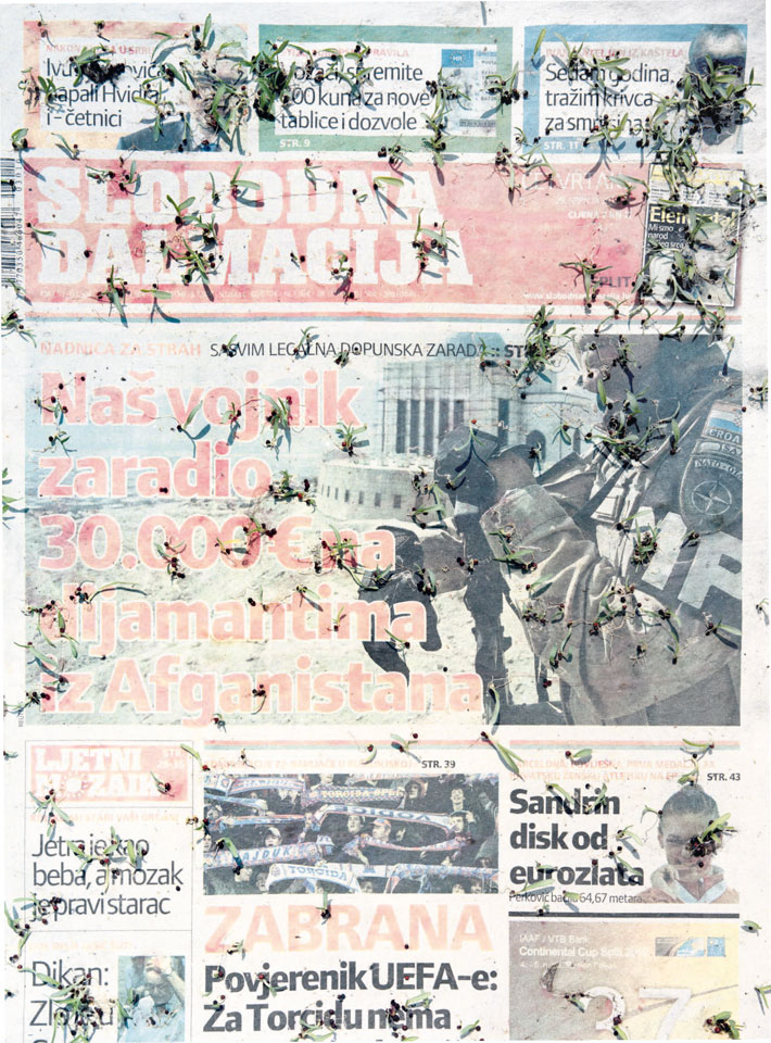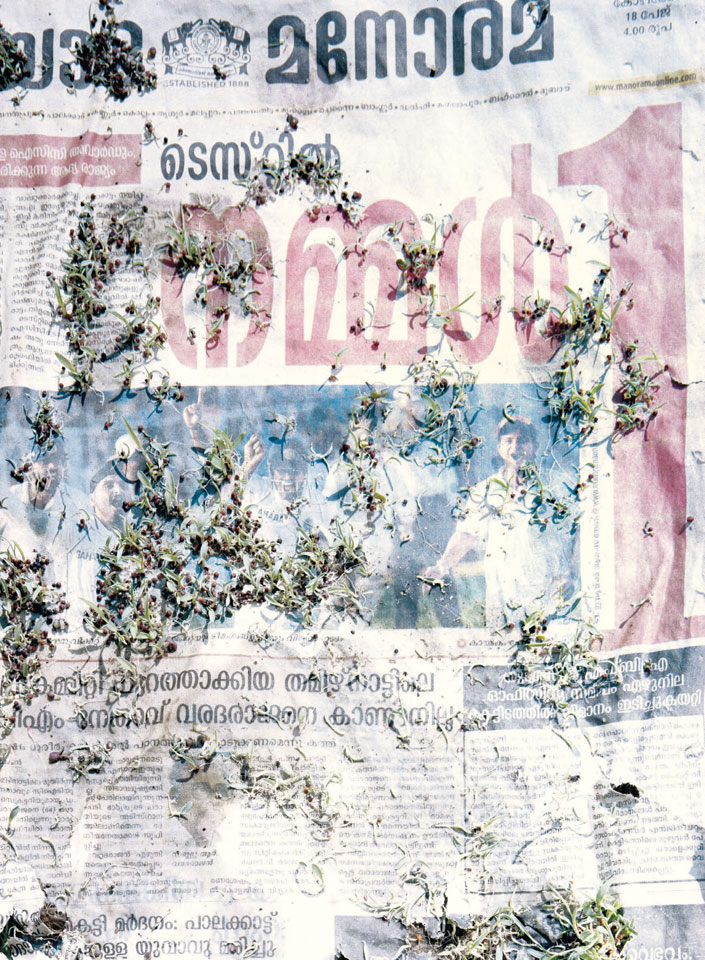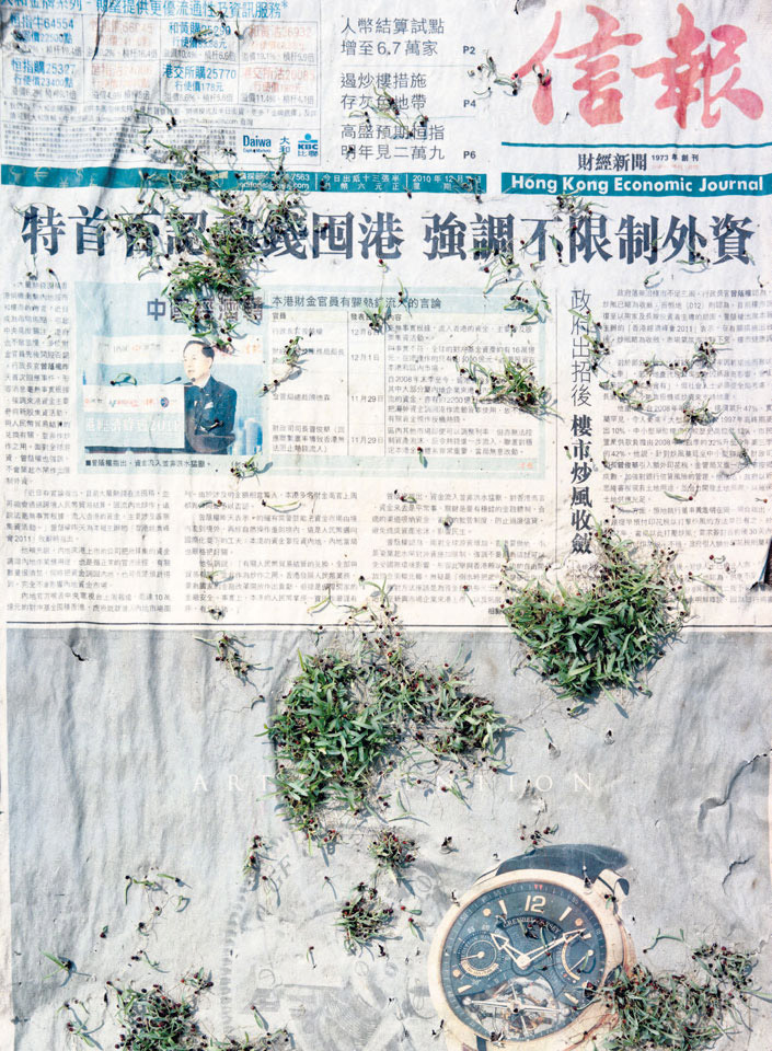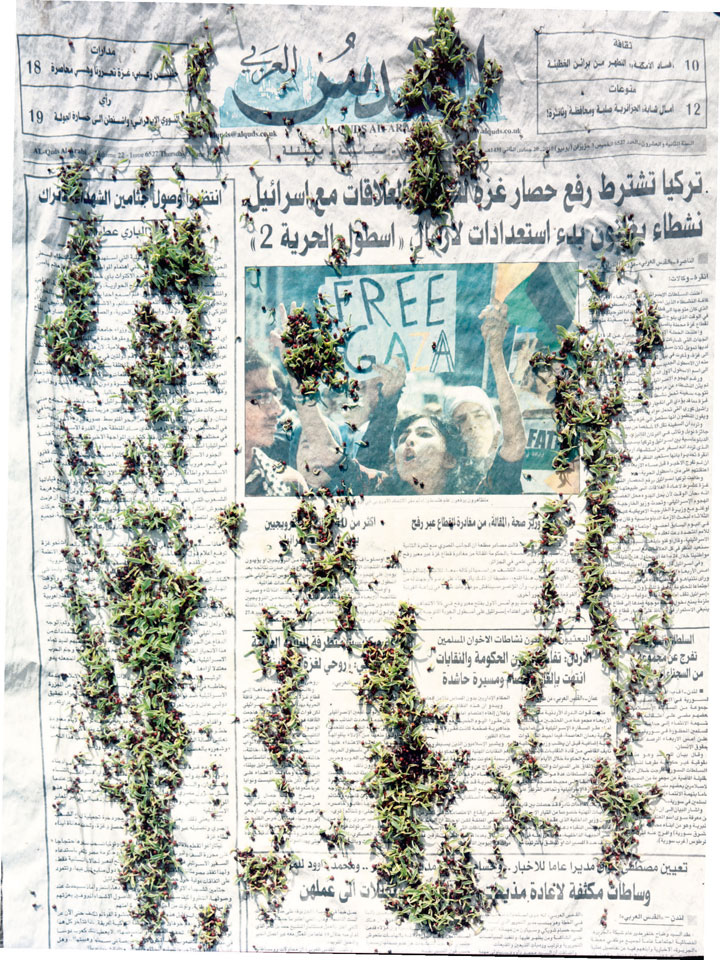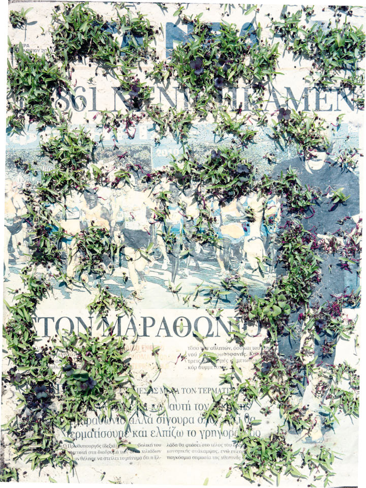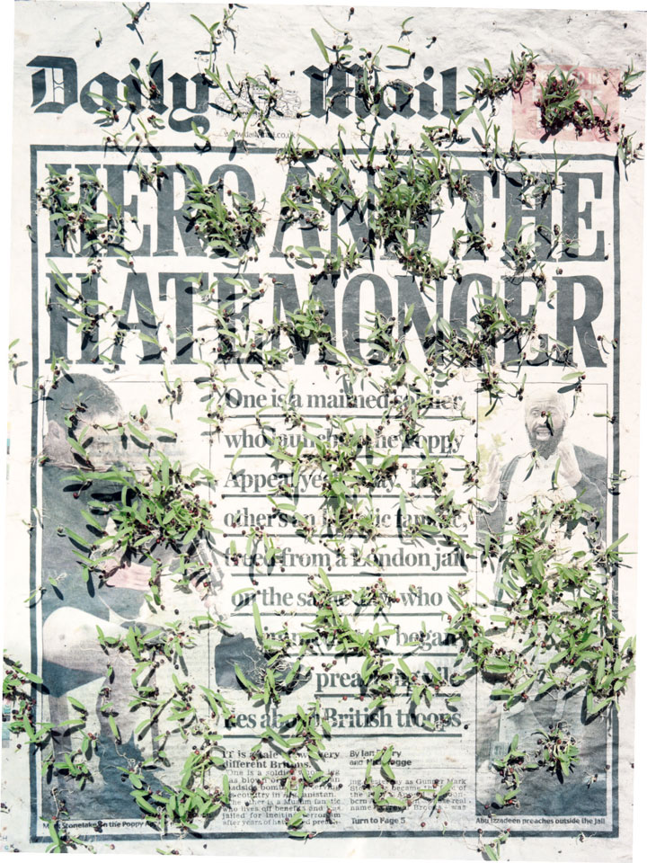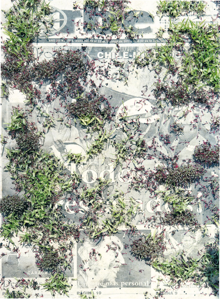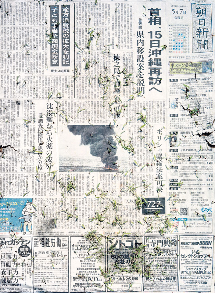 Initiated in 2010, News is Flechtner's most recent body of work, an ongoing examination of the human imprint on nature over the passing of time, and collective memories as administered by public media. Throughout it's suggested that that today's headlines are a simultaneous realization of history and of present day reality. First cultivating a variety of seeds in his garden, and then germinating the vegetation over 100 international newspapers, Flechtner photographs the publications head on, as though a document fit for an historical archive, filling his frame with the entire front page. The ensuing images, overexposed and ephemeral microcosms, allude to a human mediation in which nature is prompted to reassert itself, gradually melding and growing over the industrial world. Says Flechtner, "I'm sprinkling seeds over the newspapers; I water them and wait to see what remains. The quote of today would be, 'the excitement of today is the garden of tomorrow' ". News, shown here for the first time, is part of a larger oeuvre entitled Sites, which works around the idea of man's constant intervention to construct, control and restructure fields, gardens and parks in a decorative manner. What Flechtner attempts to convey is the confluence between the human desire to master and posses nature versus the prevailing vitality of the green kingdom.