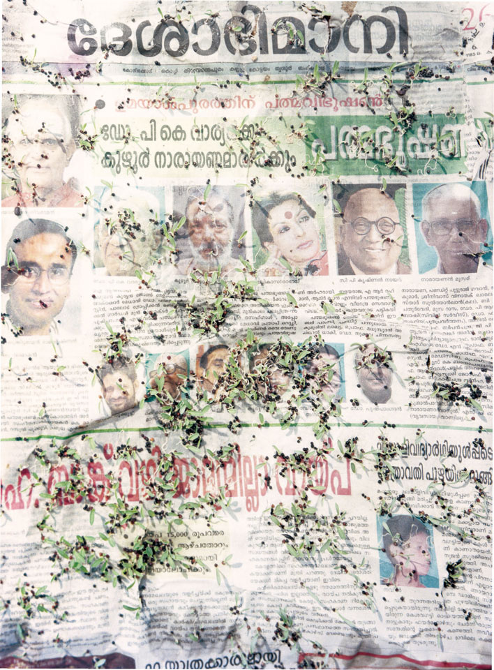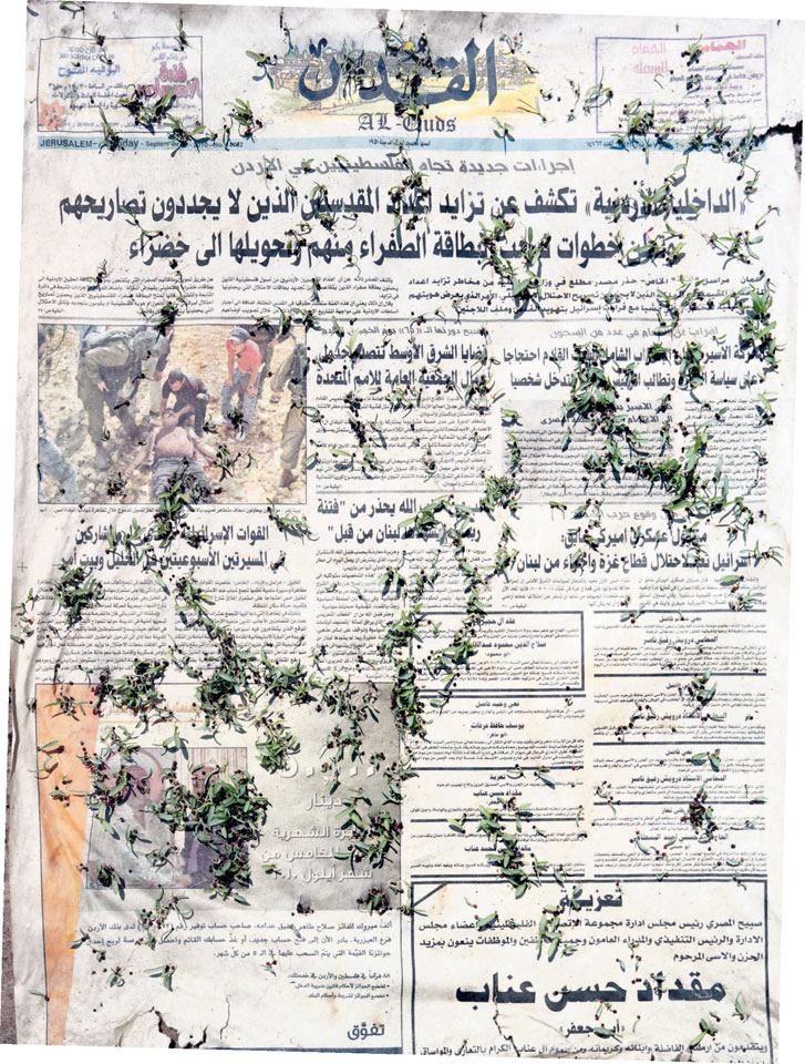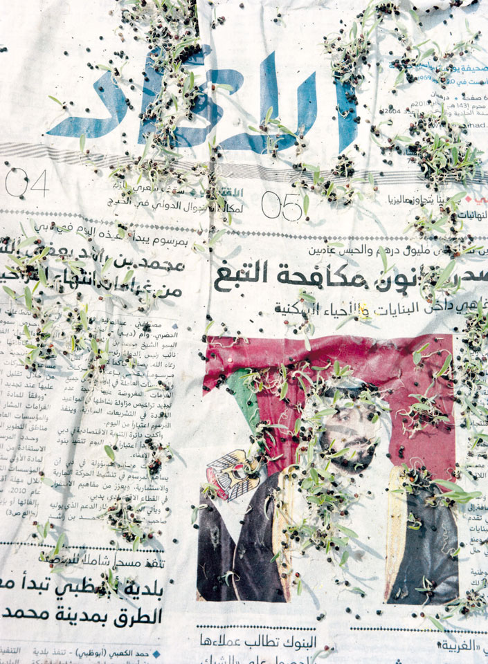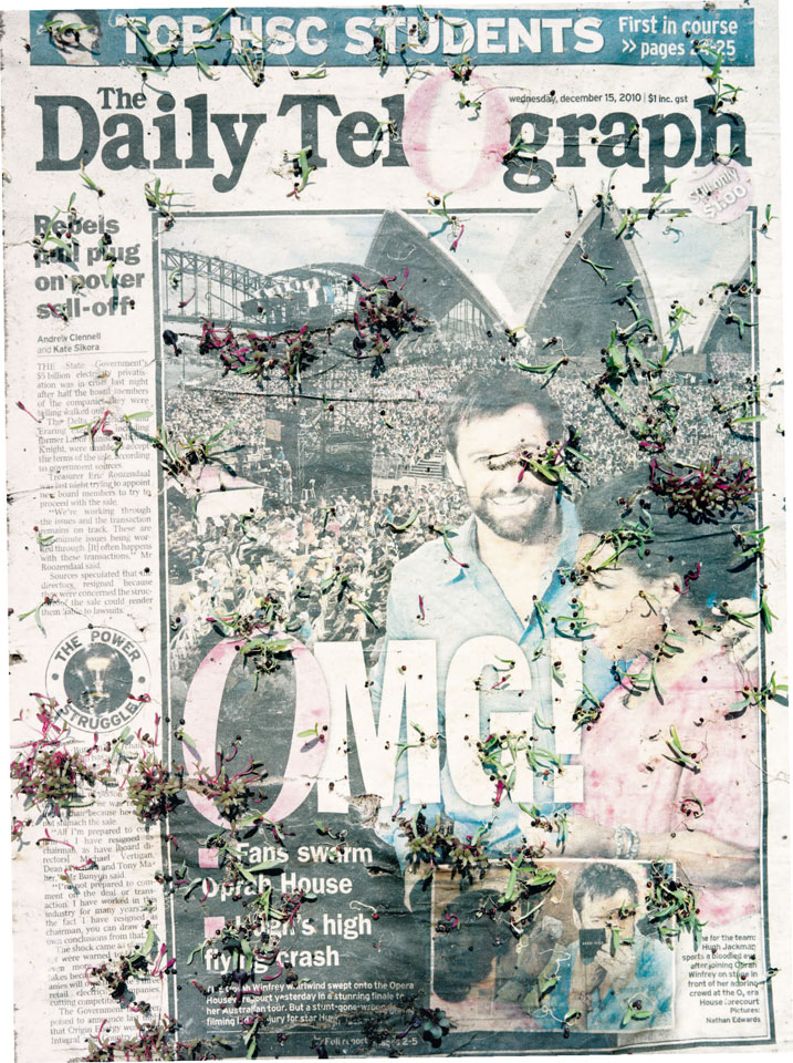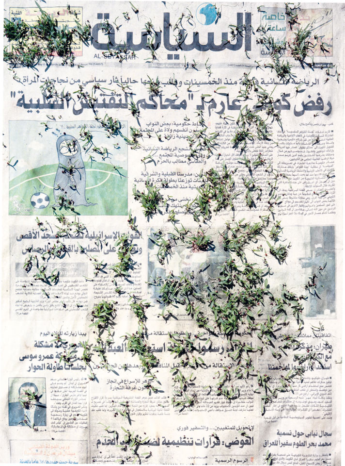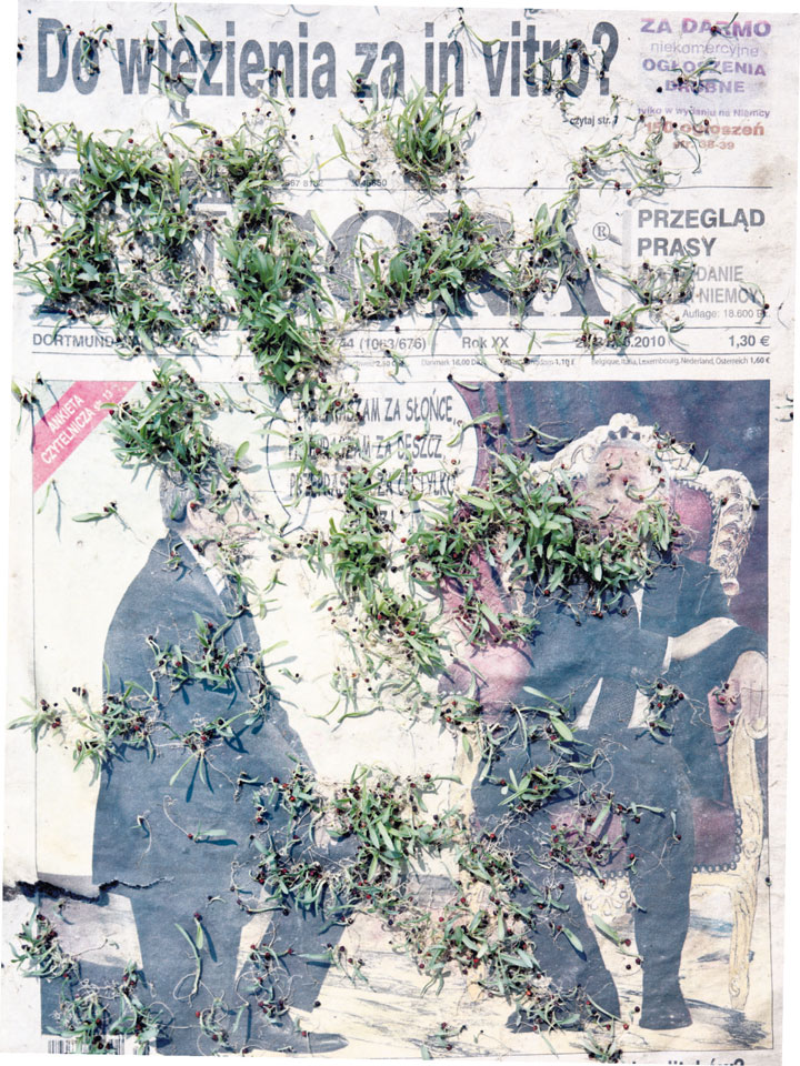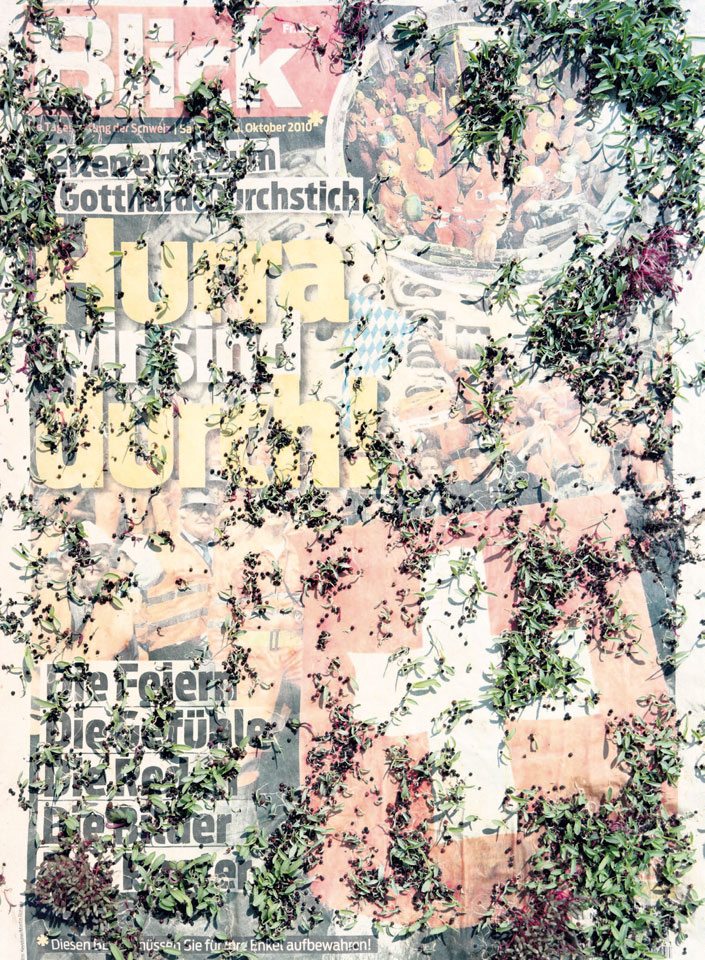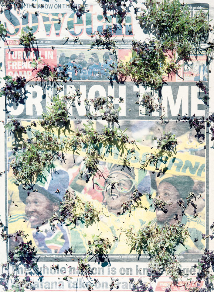Initiated in 2010, News is Flechtner's most recent body of work, an ongoing examination of the human imprint on nature over the passing of time, and collective memories as administered by public media. Throughout it's suggested that that today's headlines are a simultaneous realization of history and of present day reality. First cultivating a variety of seeds in his garden, and then germinating the vegetation over 100 international newspapers, Flechtner photographs the publications head on, as though a document fit for an historical archive, filling his frame with the entire front page. The ensuing images, overexposed and ephemeral microcosms, allude to a human mediation in which nature is prompted to reassert itself, gradually melding and growing over the industrial world. Says Flechtner, "I'm sprinkling seeds over the newspapers; I water them and wait to see what remains. The quote of today would be, 'the excitement of today is the garden of tomorrow' ". News, shown here for the first time, is part of a larger oeuvre entitled Sites, which works around the idea of man's constant intervention to construct, control and restructure fields, gardens and parks in a decorative manner. What Flechtner attempts to convey is the confluence between the human desire to master and posses nature versus the prevailing vitality of the green kingdom.